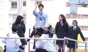 羽生結弦選手の脇を地元の女子高生